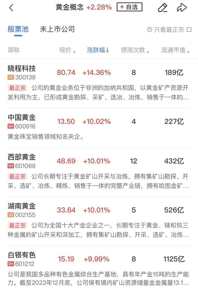 个股来看,今日早盘涨停数量为47家(不包括ST及未开板新股),炸板率为40%,连板股数量为11家,白银有色8连板、中国黄金5连板,湖南黄金4连板,可川科技3连板,北方铜业、百通能源、闰土股份、百川股份、山西焦化、西部黄金、怡球资源2连板。